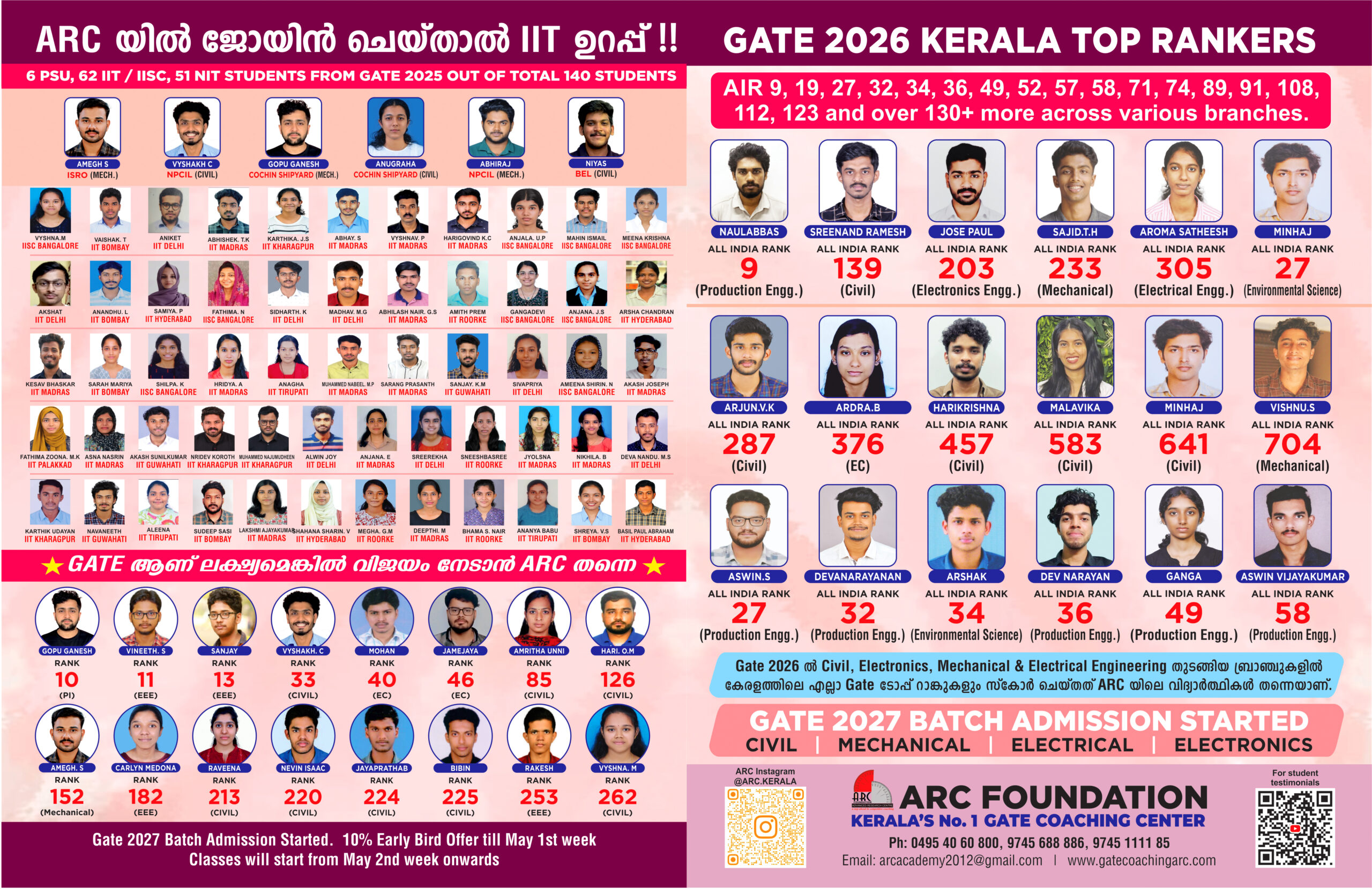 ARC has been offering excellent coaching in GATE from 2012 onwards.